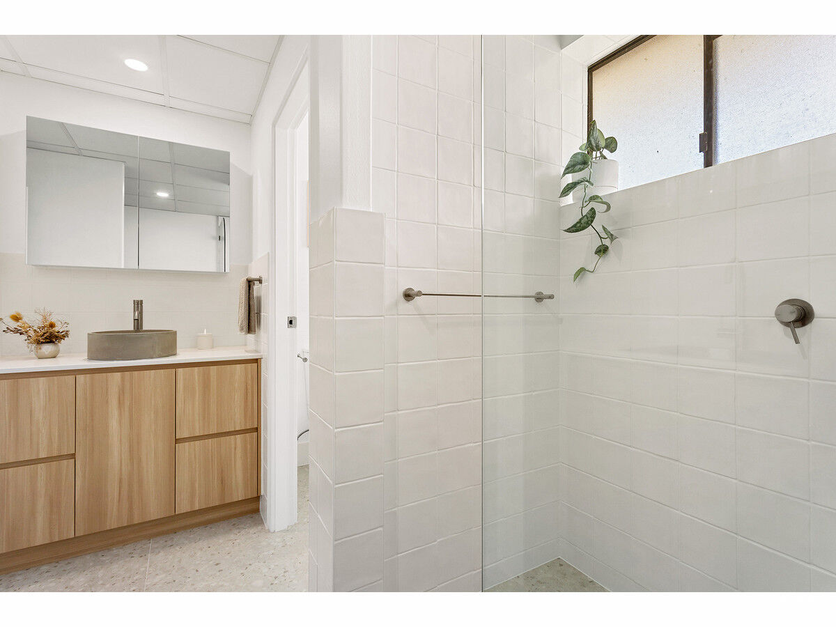 – Stunning new bathroom with frameless glass shower, Caesarstone vanity, brushed nickel tapware, separate w/c, laundry area
