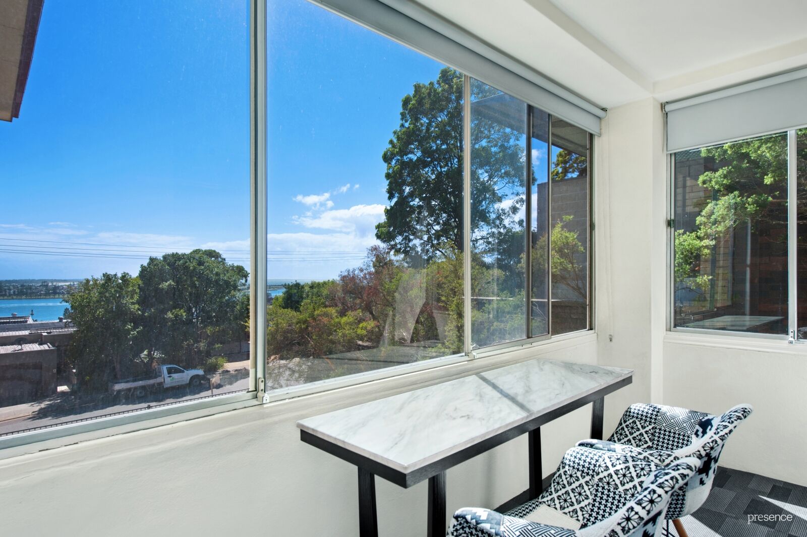A beautiful north facing unit with stunning views over Newcastle Harbour offers the rare opportunity of parking for two cars. This unique property is open plan with two good bedrooms offering built in wardrobes, master with water views. A lovely fresh and updated kitchen and bathroom, plus the addition of two sun rooms for added space.