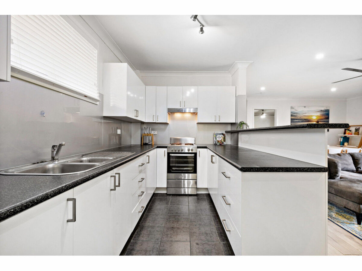 A modern interior makes the most of the space afforded by this classic property style. Two good sized bedrooms with built-in wardrobes and ceiling fans. The spacious open plan living area is complemented by a large u-shaped kitchen providing a great place for entertaining friends or family.