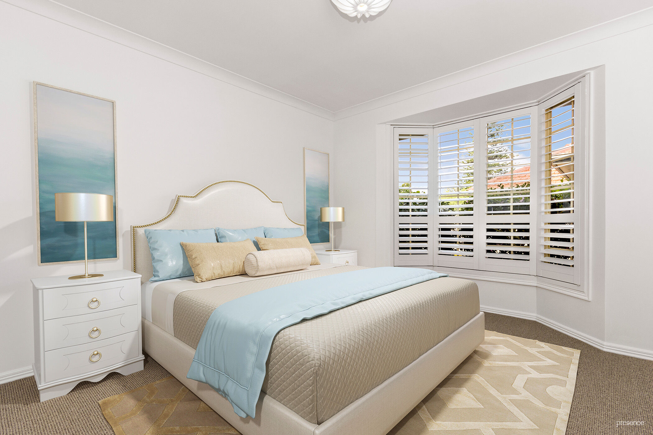 Entertain effortlessly under the eclipse roof on the alfresco area, overlooking the low-maintenance courtyard. Luxuriate in the sleek full-size bathroom featuring a freestanding tub, while each robed bedroom offers plush carpeting and shutters for privacy. Stay comfortable year-round with ducted air-conditioning and enjoy the convenience of an oversized laundry with a second WC.