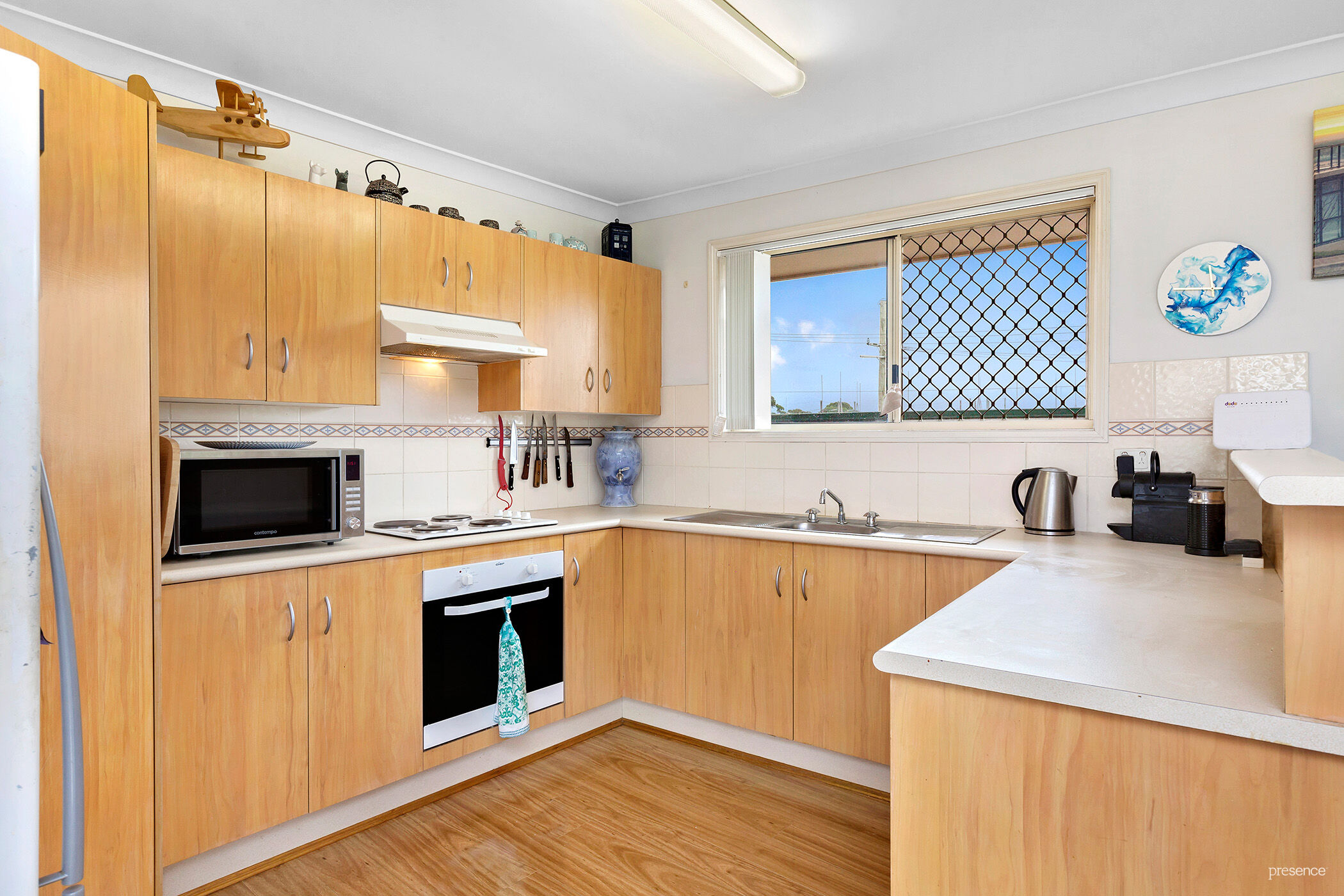 – Spacious kitchen appointed with electric cooktop